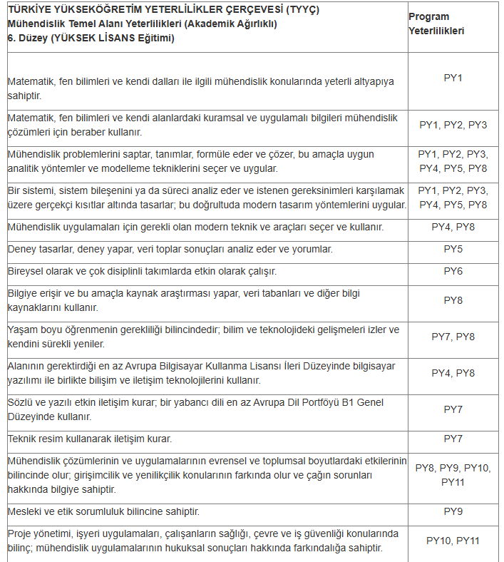 - Yaşam boyu öğrenmenin gerekliliği bilinci; bilgiye erişebilme becerisi, bilim ve teknolojideki en son gelişmeleri takip edebilme becerisi, sürekli güncel kalabilme becerisi.